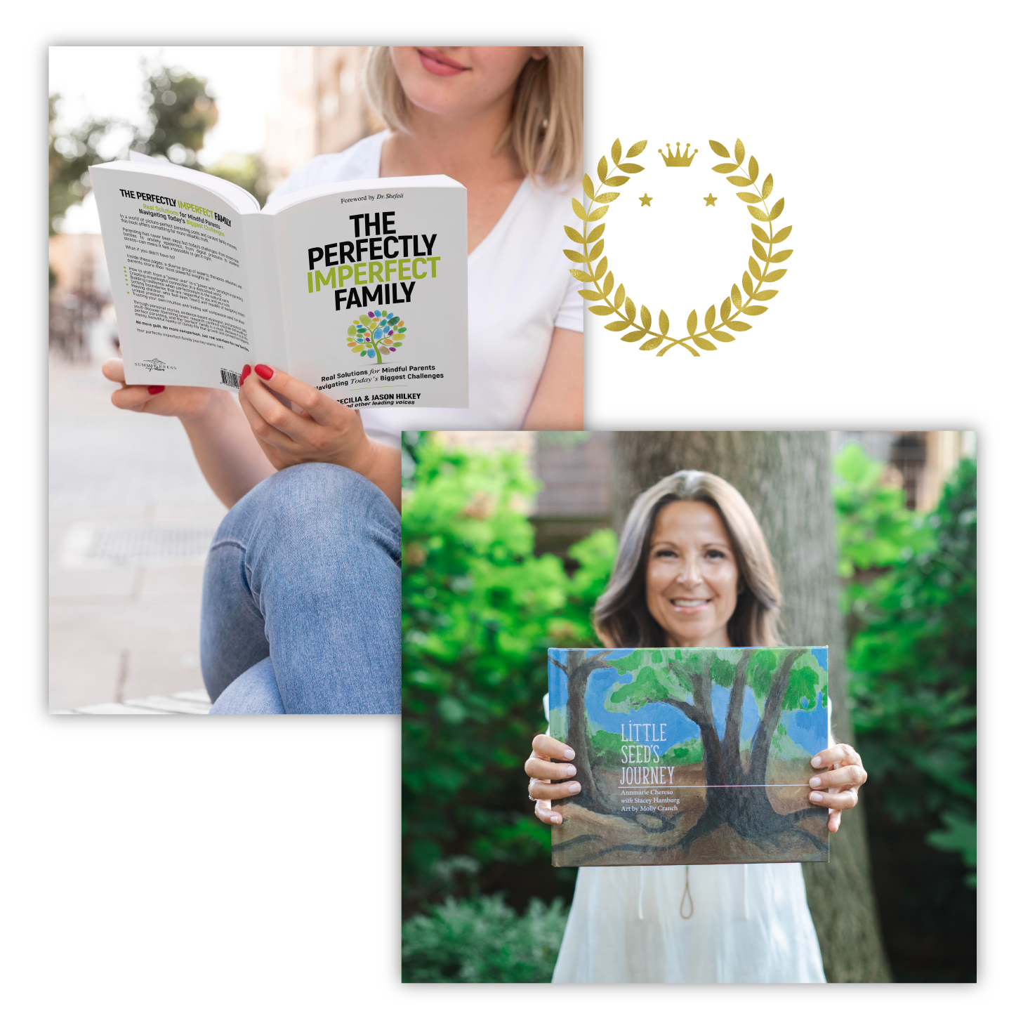 Both works reflect her commitment to helping families grow with presence, authenticity, and love.